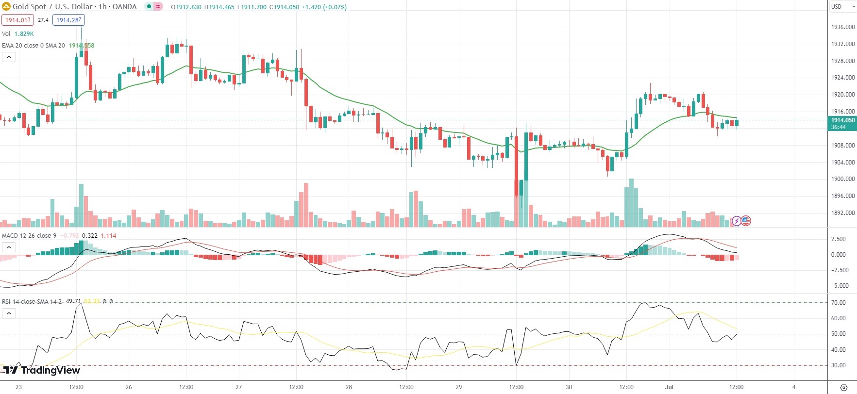 The yellow metal could continue trading within the $1,900-$1,930 range before the FOMC minutes release on Wednesday, De Casa noted.