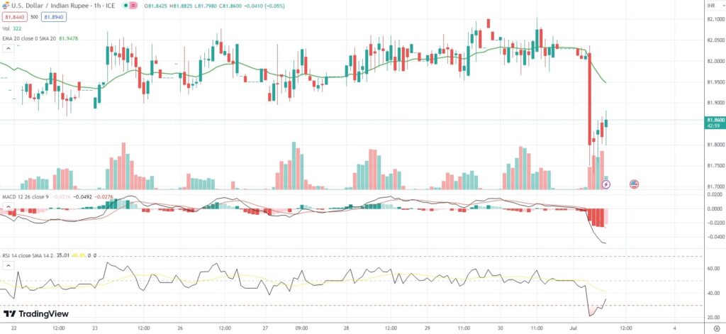 As of 7:16 GMT on Monday USD/INR was edging down 0.20% to trade at 81.8630. During the late phase of the Asian trading session, the exotic Forex pair went down as low as 81.7575. The latter has been the pair’s weakest level since May 9th (81.7500).