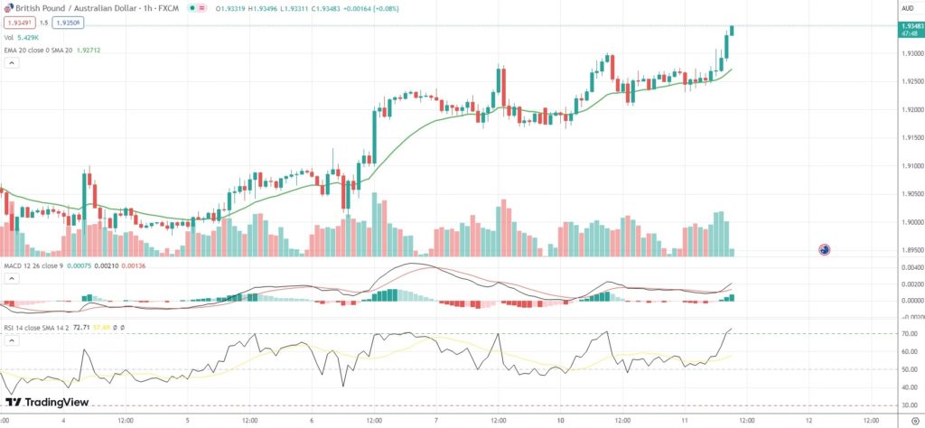 As of 9:12 GMT on Tuesday GBP/AUD was edging up 0.51% to trade at 1.9347. Earlier in the European session, the minor Forex pair went up as high as 1.9349. The latter has been the pair’s strongest level since May 6th 2020 (1.9376).