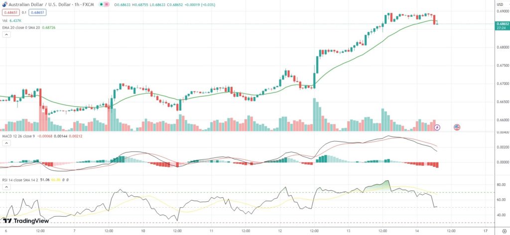 As of 7:31 GMT on Friday AUD/USD was edging down 0.32% to trade at 0.6867. During the early phase of the Asian session the major Forex pair went up as high as 0.6895. The latter has been the pair’s strongest level since June 16th (0.6899).