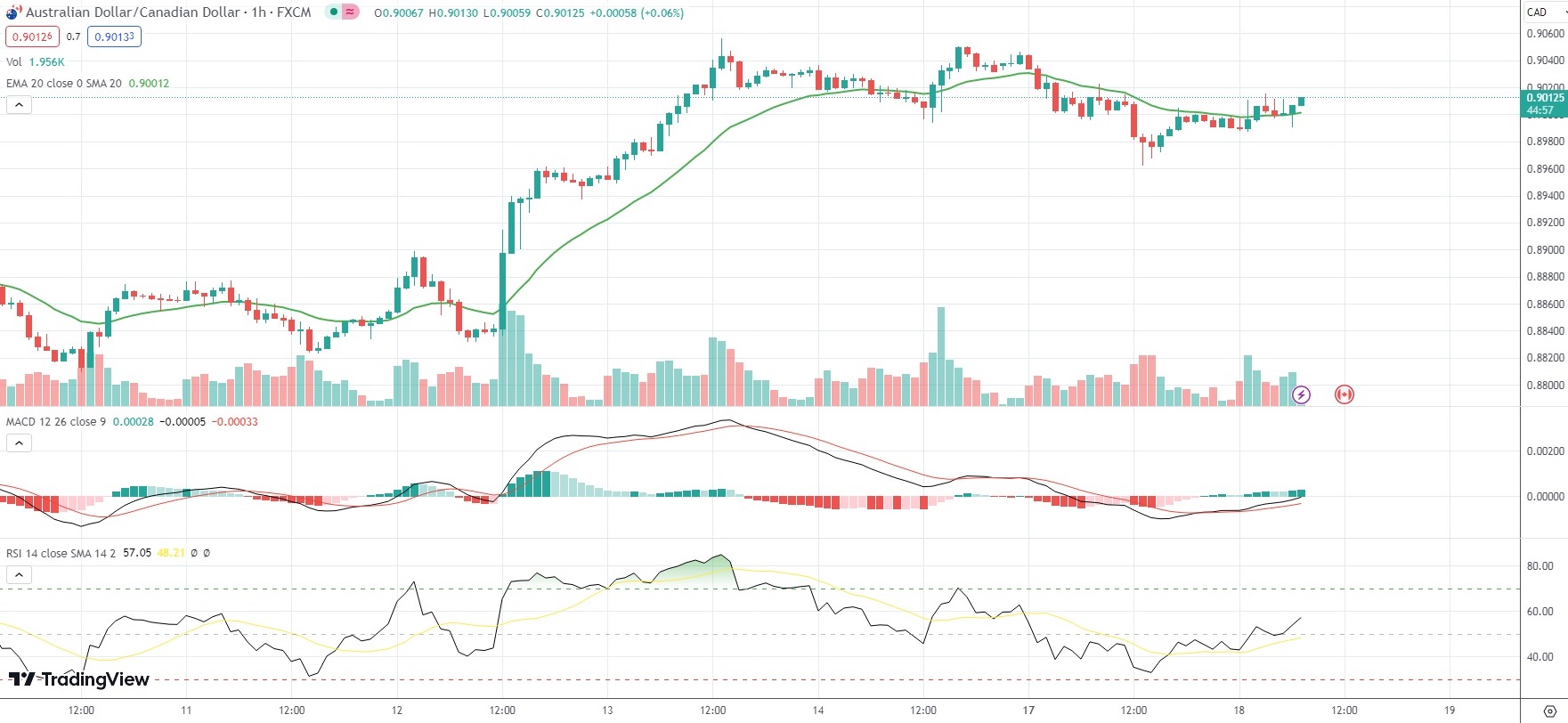 - AUD/CAD slightly stronger, not far from recent 1-month high of 0.9056