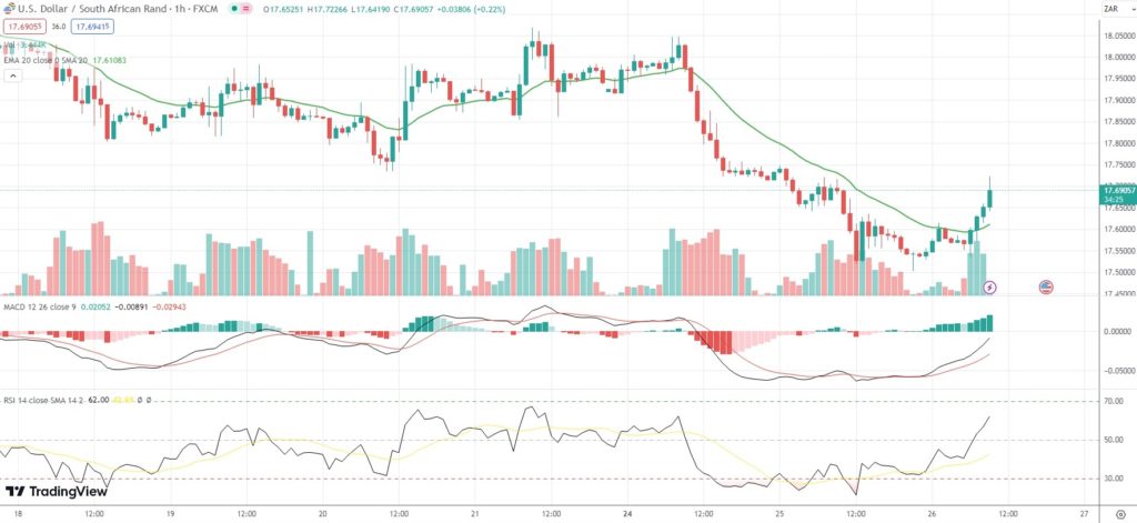 As of 9:24 GMT on Wednesday USD/ZAR was gaining 0.90% to trade at 17.7009. Earlier in the session, the exotic Forex pair went down as low as 17.5024. The latter has been the pair’s weakest level since February 8th (17.4659).