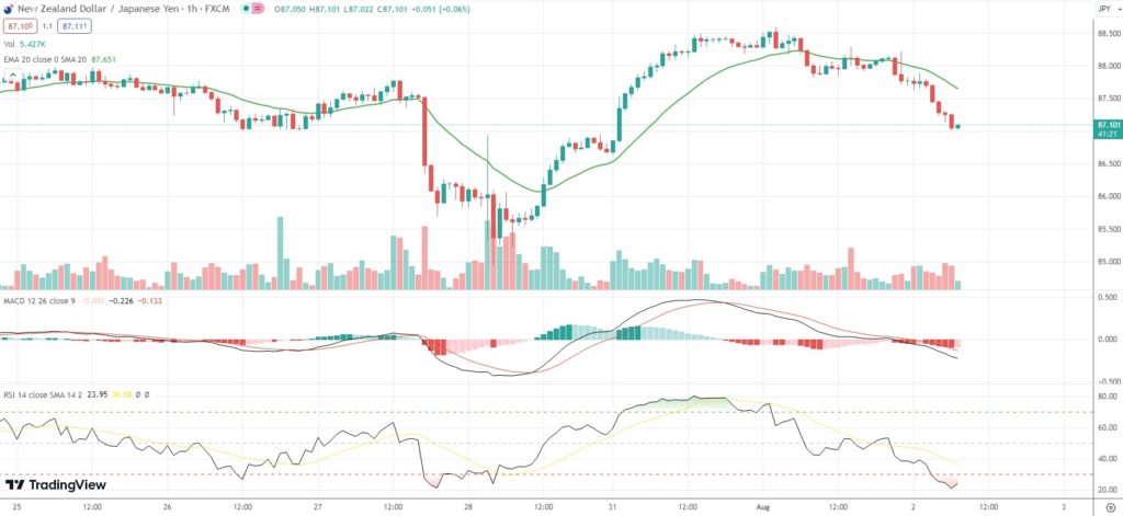 As of 7:19 GMT on Wednesday NZD/JPY was retreating 1.18% to trade at 87.083.