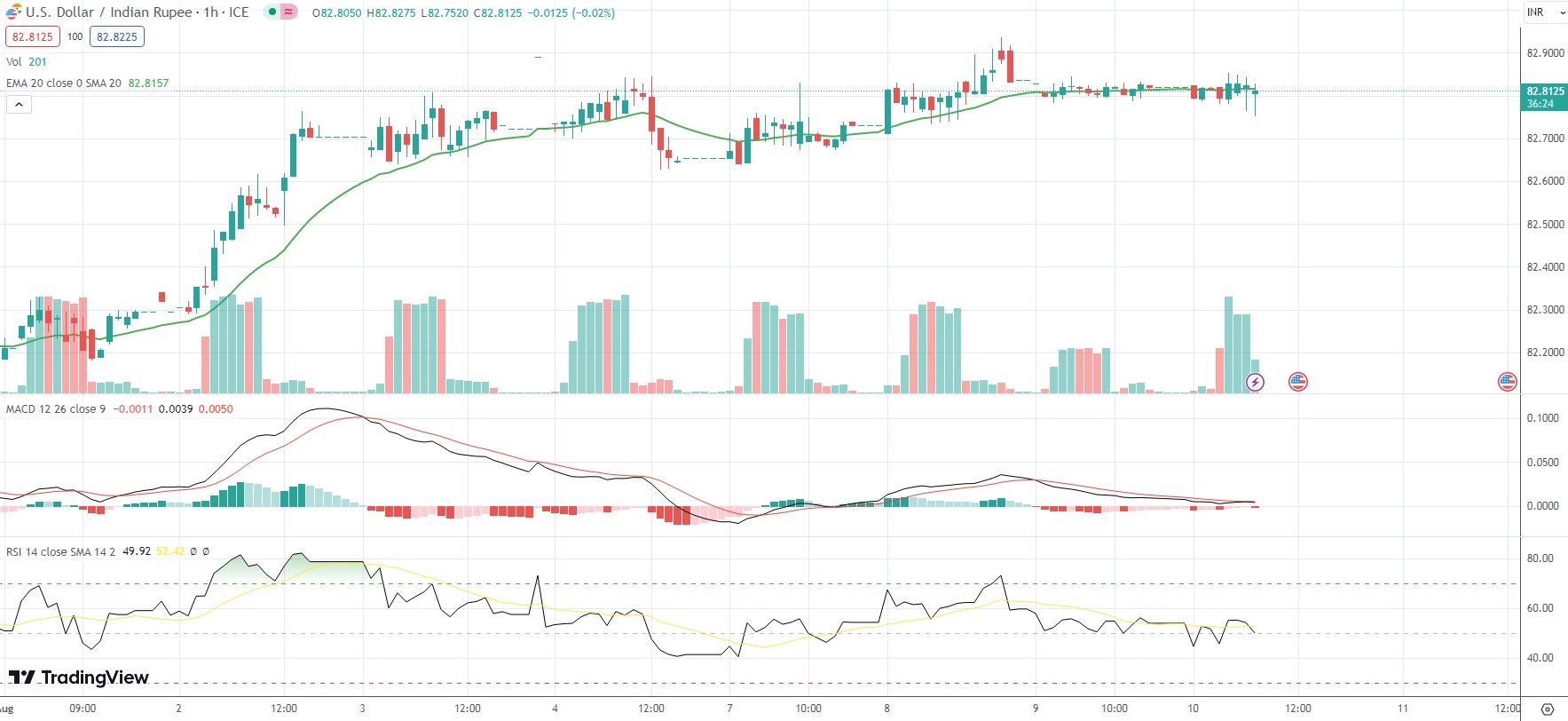 As of 7:24 GMT on Thursday USD/INR was inching down 0.04% to trade at 82.7900. Earlier this week, the exotic Forex pair went up as high as 82.9370. The latter has been the pair’s strongest level since February 27th (82.9450).