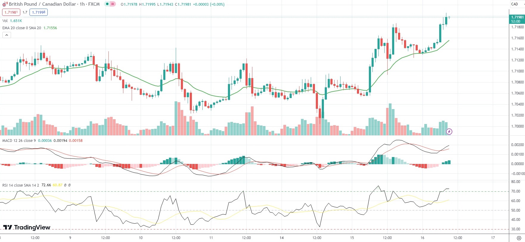 As of 9:07 GMT on Wednesday GBP/CAD was edging up 0.29% to trade at 1.7197. Earlier in the session, the minor Forex pair went up as high as 1.7206. The latter has been the pair’s strongest level since July 18th (1.7329).