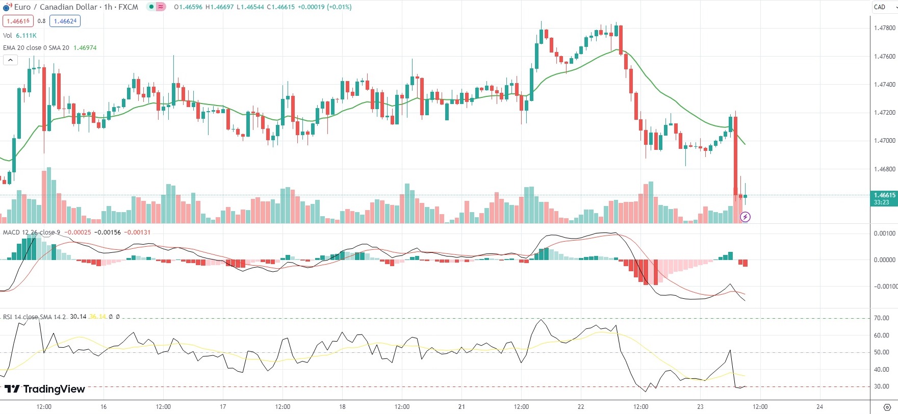 As of 9:26 GMT on Wednesday EUR/CAD was edging down 0.22% to trade at 1.4662. Earlier this week, the minor Forex pair went up as high as 1.4785. The latter has been the pair’s strongest level since August 11th (1.4802).
