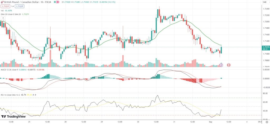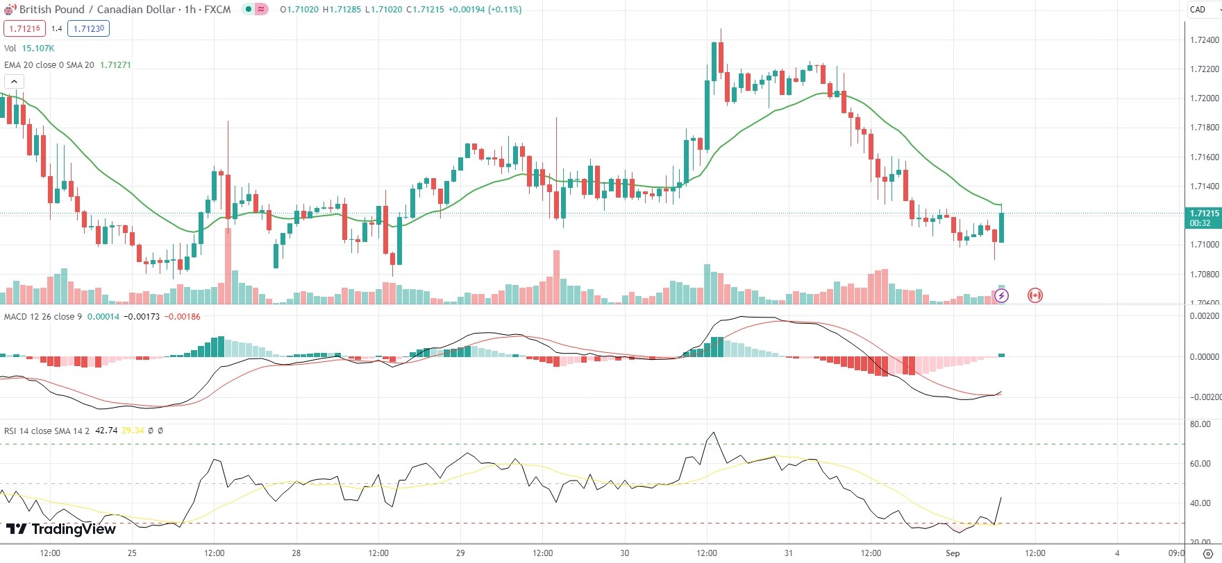 As of 7:58 GMT on Friday GBP/CAD was inching up 0.03% on the day to trade at 1.7122. The minor Forex pair has retreated 1.11% from the 1-month high of 1.7315, which it registered on August 22nd.