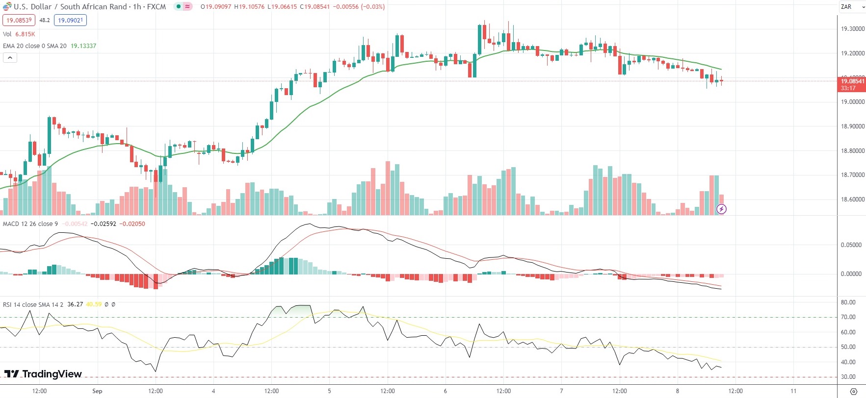 As of 9:26 GMT on Friday USD/ZAR was edging down 0.43% on the day to trade at 19.0858. Earlier this week, the exotic Forex pair went up as high as 19.3352. The latter has been the pair’s strongest level since June 6th (19.3566).
