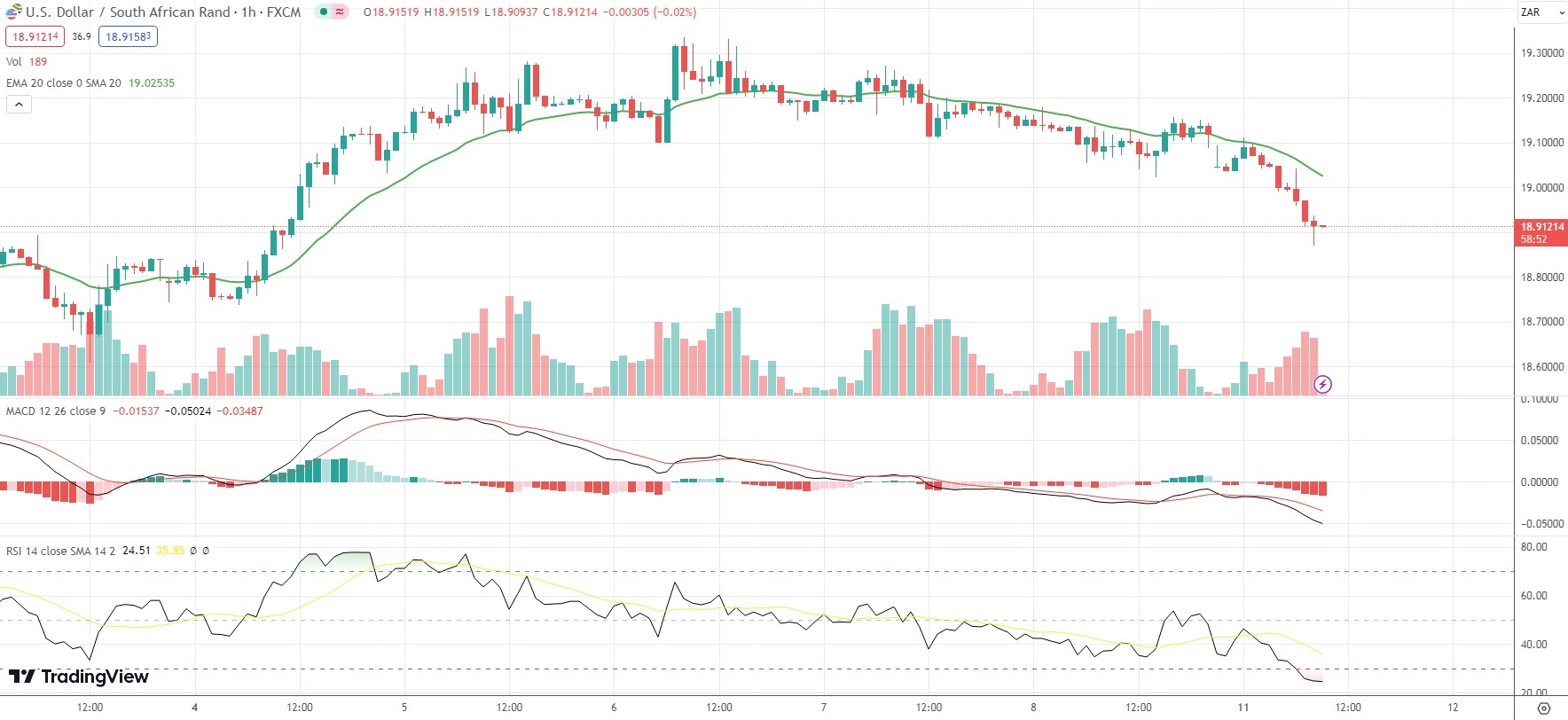 As of 9:00 GMT on Monday USD/ZAR was retreating 1.09% on the day to trade at 18.9106. Earlier in the session, the exotic Forex pair went down as low as 18.8694. The latter has been the pair’s weakest level since September 4th (18.7376).