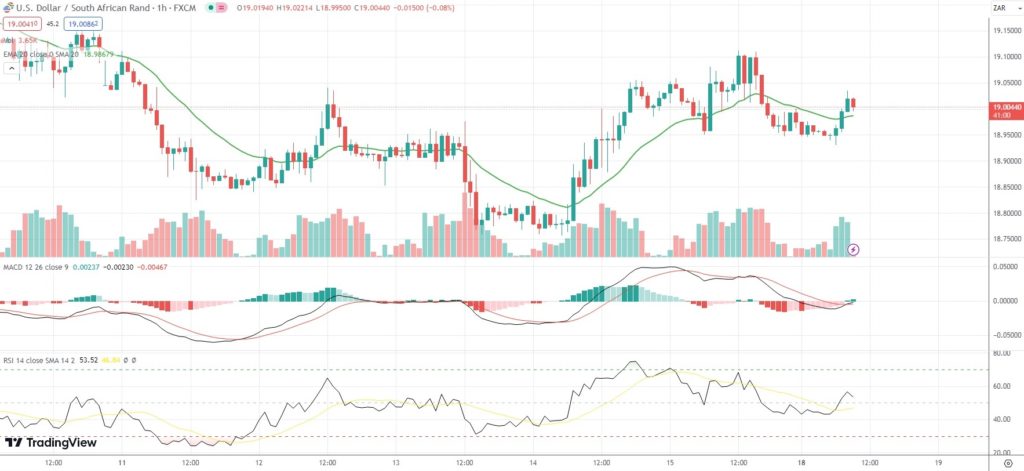 As of 9:18 GMT on Monday USD/ZAR was edging up 0.21% on the day to trade at 18.9982.