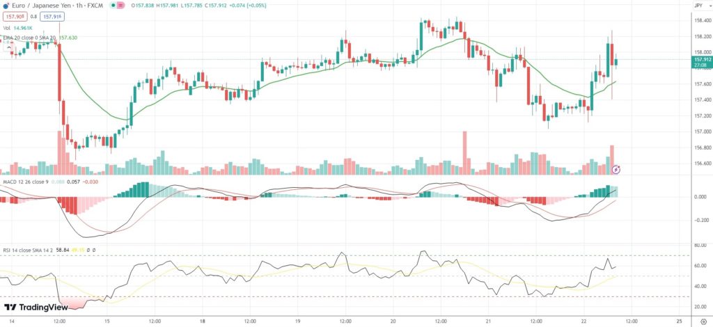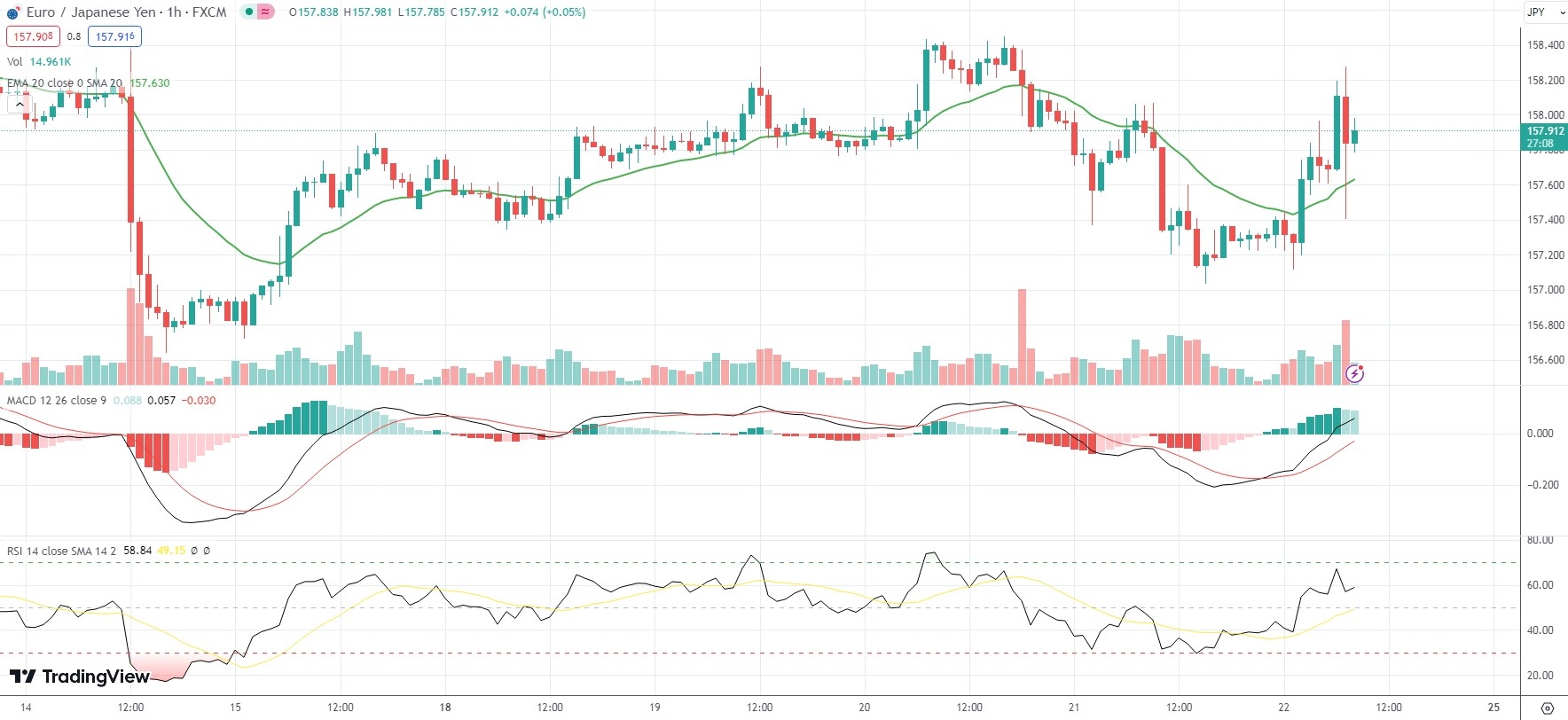 As of 8:32 GMT on Friday EUR/JPY was edging up 0.39% to trade at 157.925, after earlier registering an intraday high of 158.282.