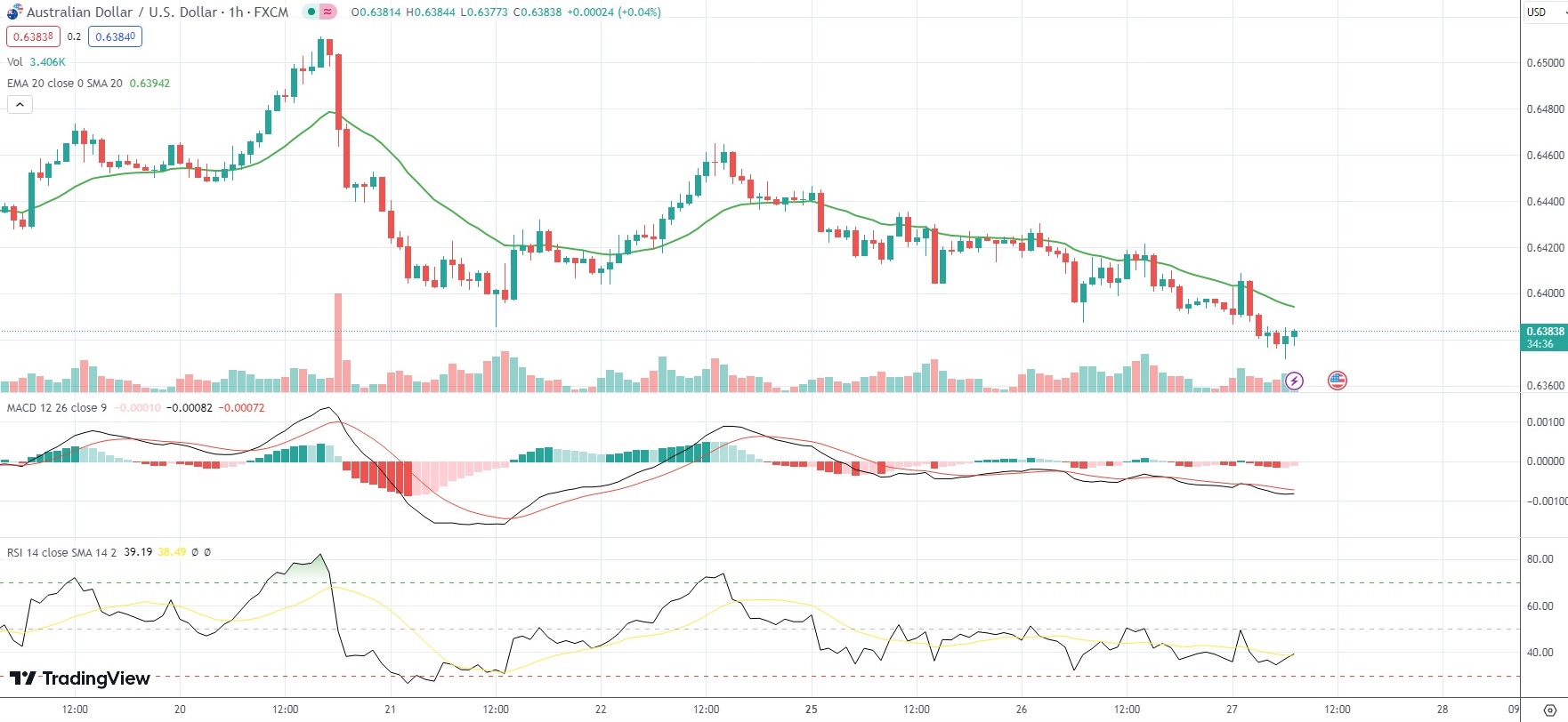 As of 7:25 GMT on Wednesday AUD/USD was edging down 0.20% to trade at 0.6384. Earlier in the session, the major Forex pair went down as low as 0.6370. The latter has been the pair’s weakest level since September 8th (0.6367).