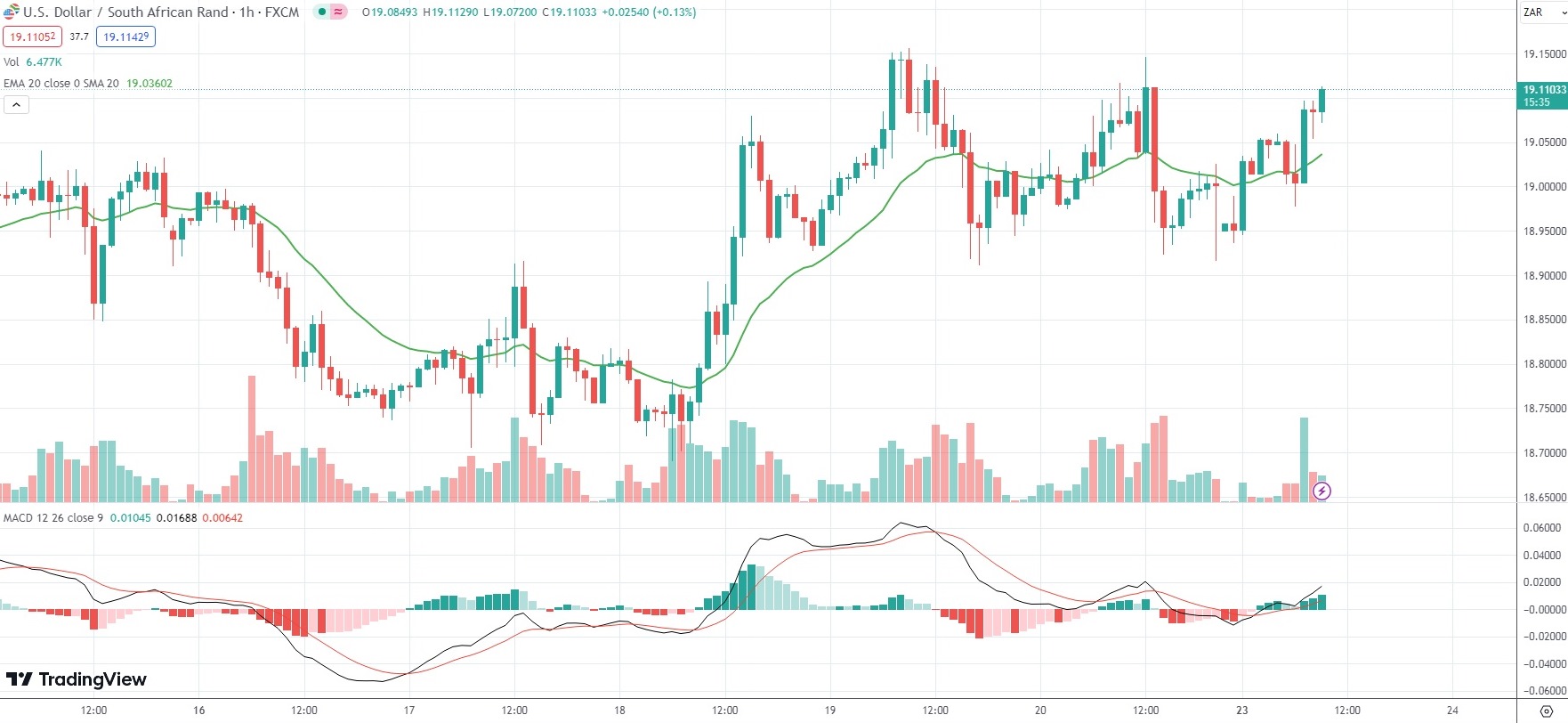 As of 9:43 GMT on Monday USD/ZAR was gaining 0.58% on the day to trade at 19.1113. Last week, the exotic Forex pair went up as high as 19.1564. The latter has been the pair’s strongest level since October 10th (19.3634).
