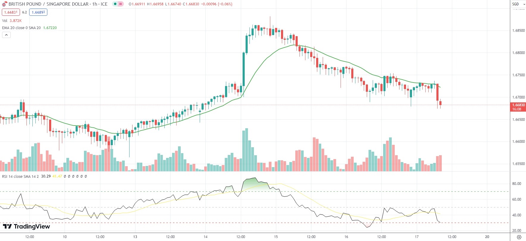 As of 8:43 GMT on Friday GBP/SGD was edging down 0.19% on the day to trade at 1.6683. Earlier in the week, the exotic Forex pair went up as high as 1.6882. The latter has been the pair’s strongest level since September 20th (1.6920).