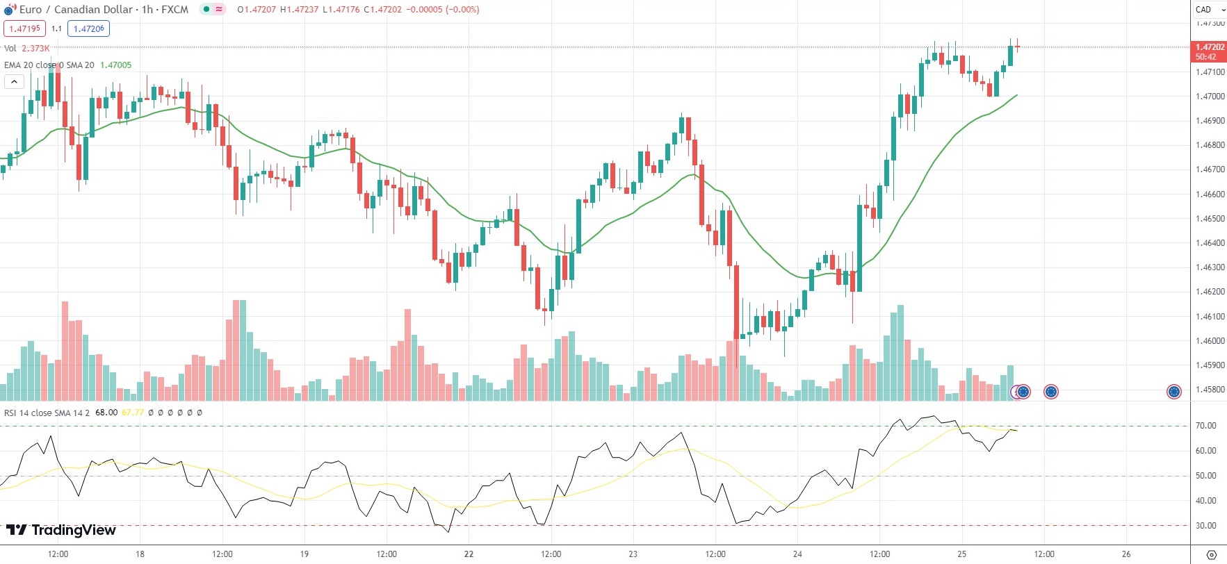 As of 8:07 GMT on Thursday EUR/CAD was inching up 0.05% to trade at 1.4720. Earlier in the session, the minor Forex pair went up as high as 1.4724. The latter has been the pair’s strongest level since January 16th (1.4726).