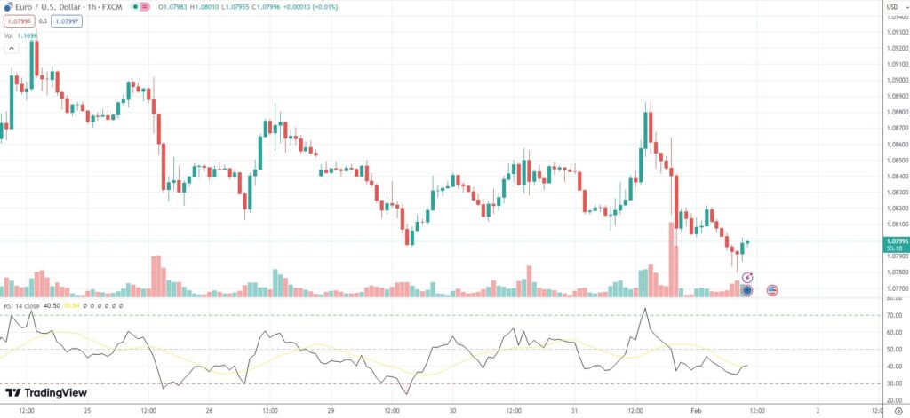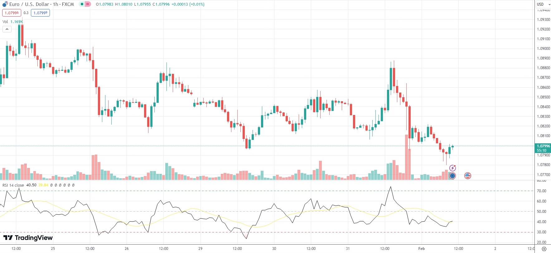 As of 10:01 GMT on Thursday the EUR/USD currency pair was edging down 0.18% to trade at 1.0798. Earlier in the session, the major Forex pair went down as low as 1.0780. The latter has been the pair’s weakest level since December 13th 2023 (1.0773).
