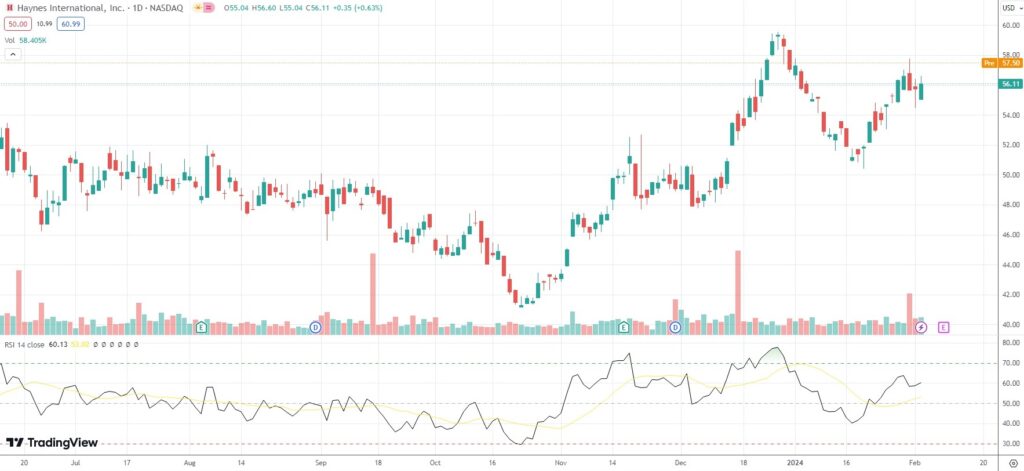 The shares of Haynes International Inc went up 24.86% in 2023, compared with a 43.42% gain for the benchmark index, NASDAQ Composite (IXIC).
