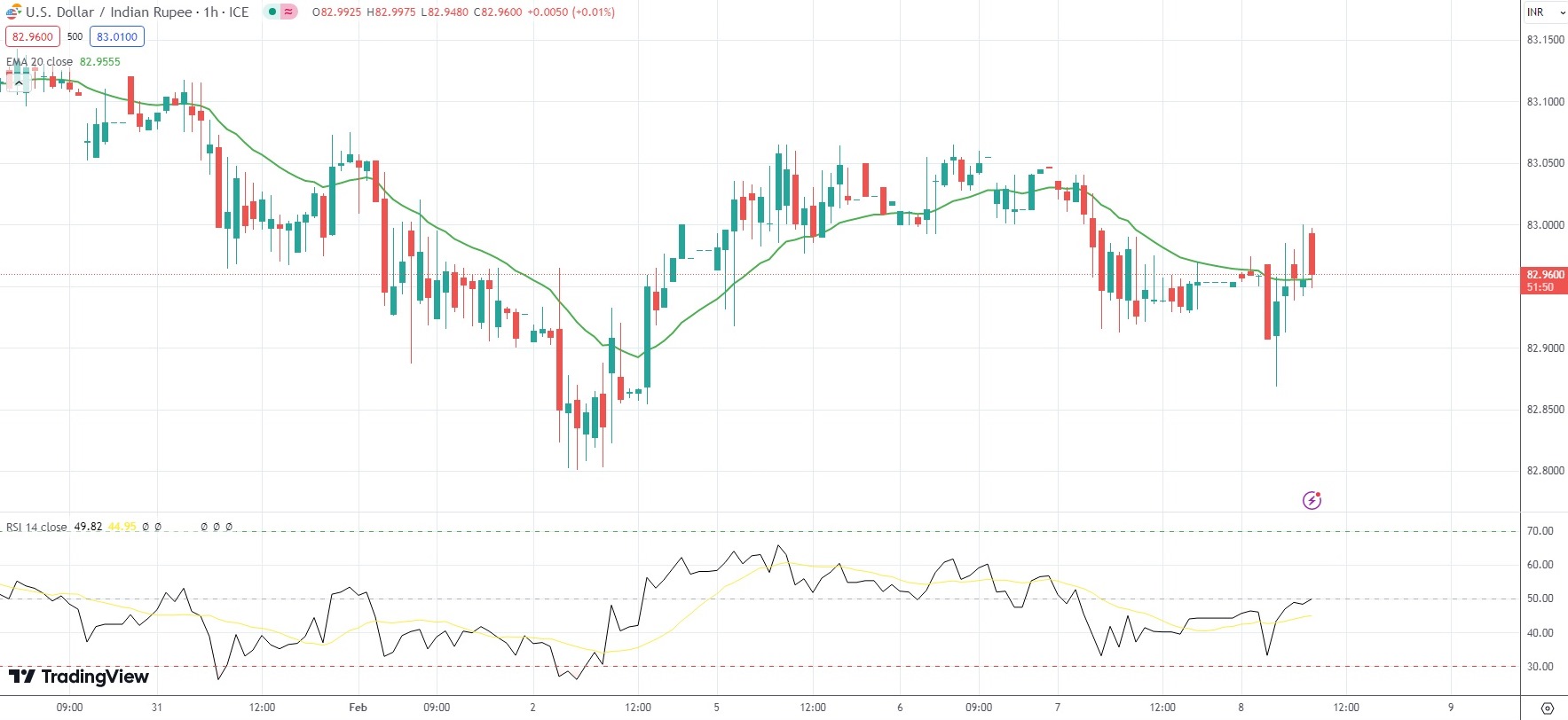 The USD/INR currency pair steadied after recording an intraday low of 82.8950 on Thursday, as the Reserve Bank of India kept its benchmark repo rate unchanged at 6.5% for the sixth straight policy meeting in February, as largely expected.