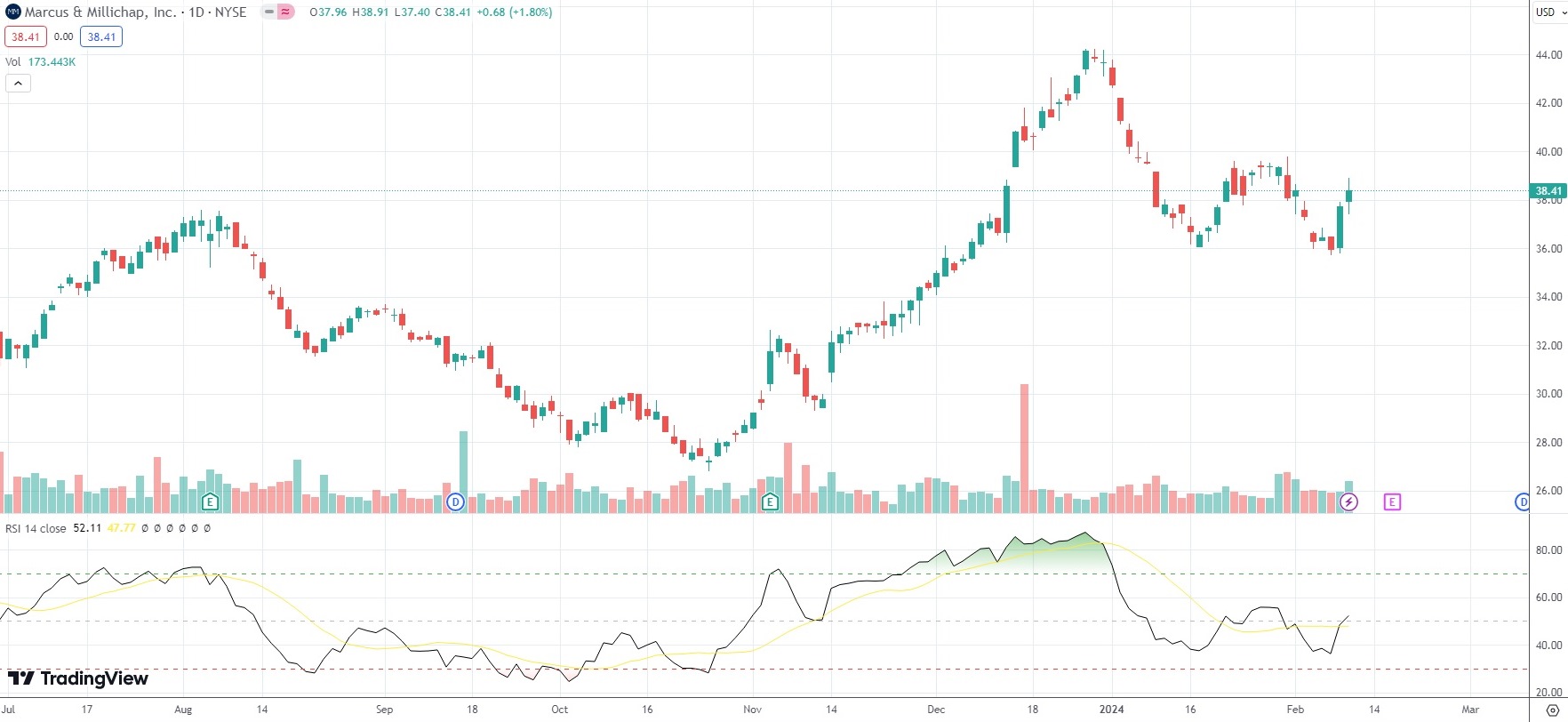 The shares of Marcus & Millichap Inc (MMI) have retreated 12.06% so far this year, following a 26.79% gain in 2023.