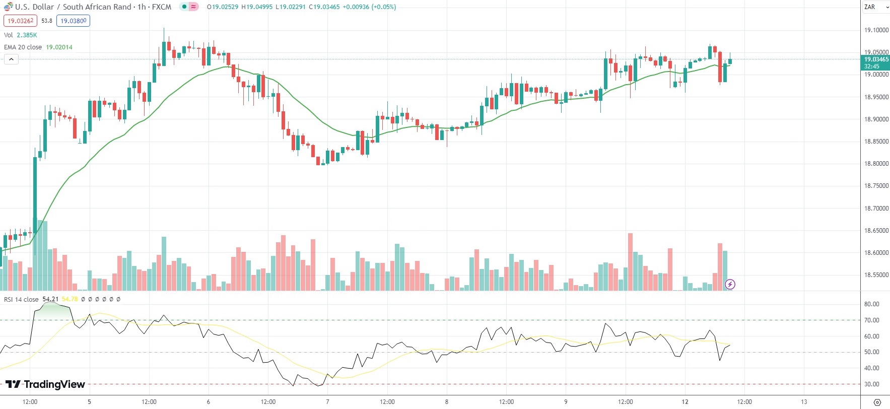 The USD/ZAR currency pair was a notch firmer on Monday, while trading near a 1-week high of 19.0686, as market players shift their focus to the US consumer inflation data and to speeches by a host of Federal Reserve officials.