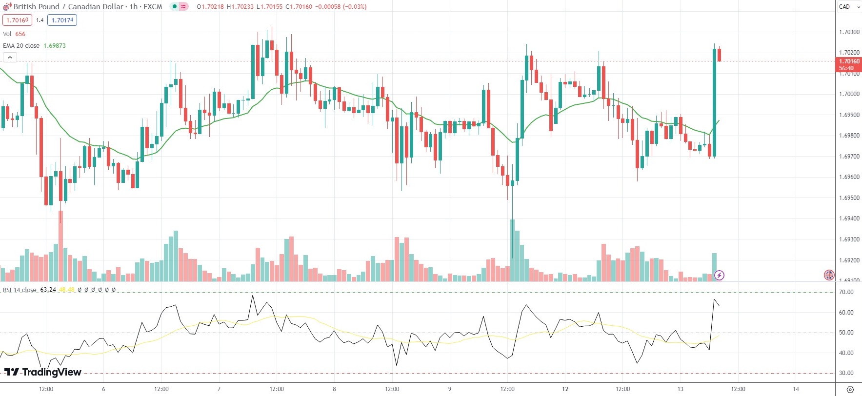 As of 7:57 GMT on Tuesday the GBP/CAD currency pair was edging up 0.26% to trade at 1.7022.