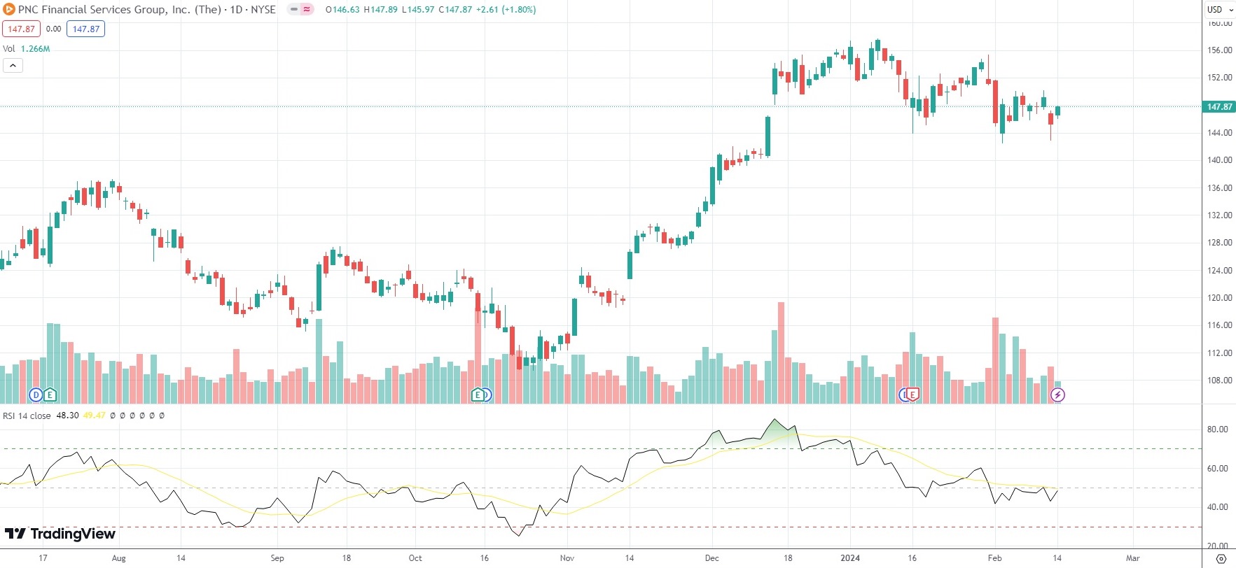 The shares of PNC Financial Services Group Inc (PNC) went down 1.96% in 2023, compared with a 24.23% gain for the benchmark index, S&P 500 (SPX).
