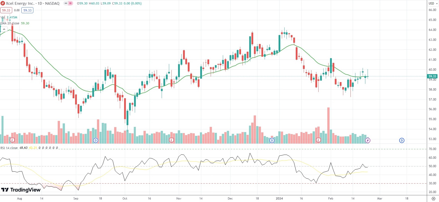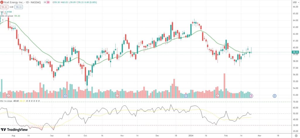 The shares of Xcel Energy Inc (XEL) closed without change at $59.33 on Nasdaq on Friday, following a 0.80% loss from the previous market session.