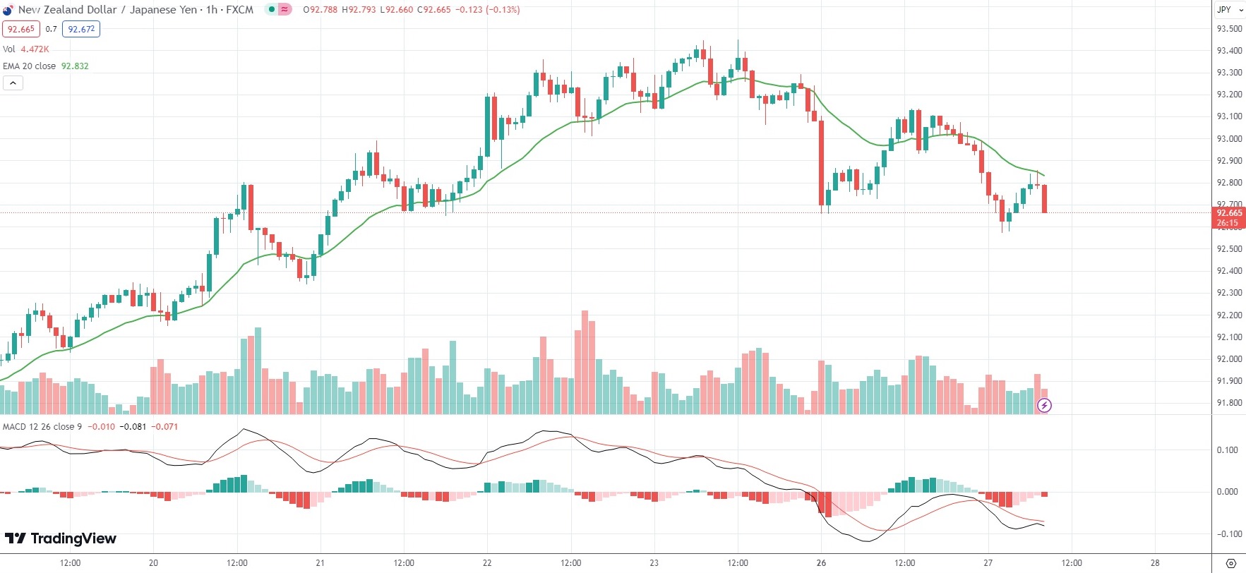 As of 8:33 GMT on Tuesday the NZD/JPY currency pair was edging down 0.33% to trade at 92.665.