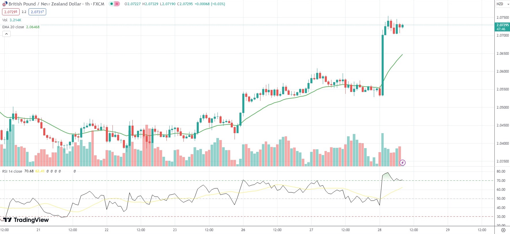 As of 8:11 GMT on Wednesday the GBP/NZD currency pair was gaining 0.89% to trade at 2.0731.