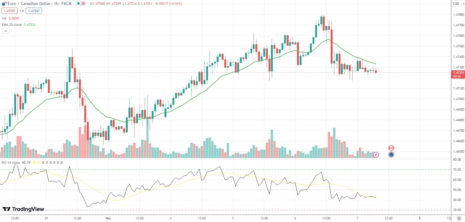 The EUR/CAD currency pair traded within a tight range on Thursday, as market players awaited the outcome of the ECB’s March policy meeting.