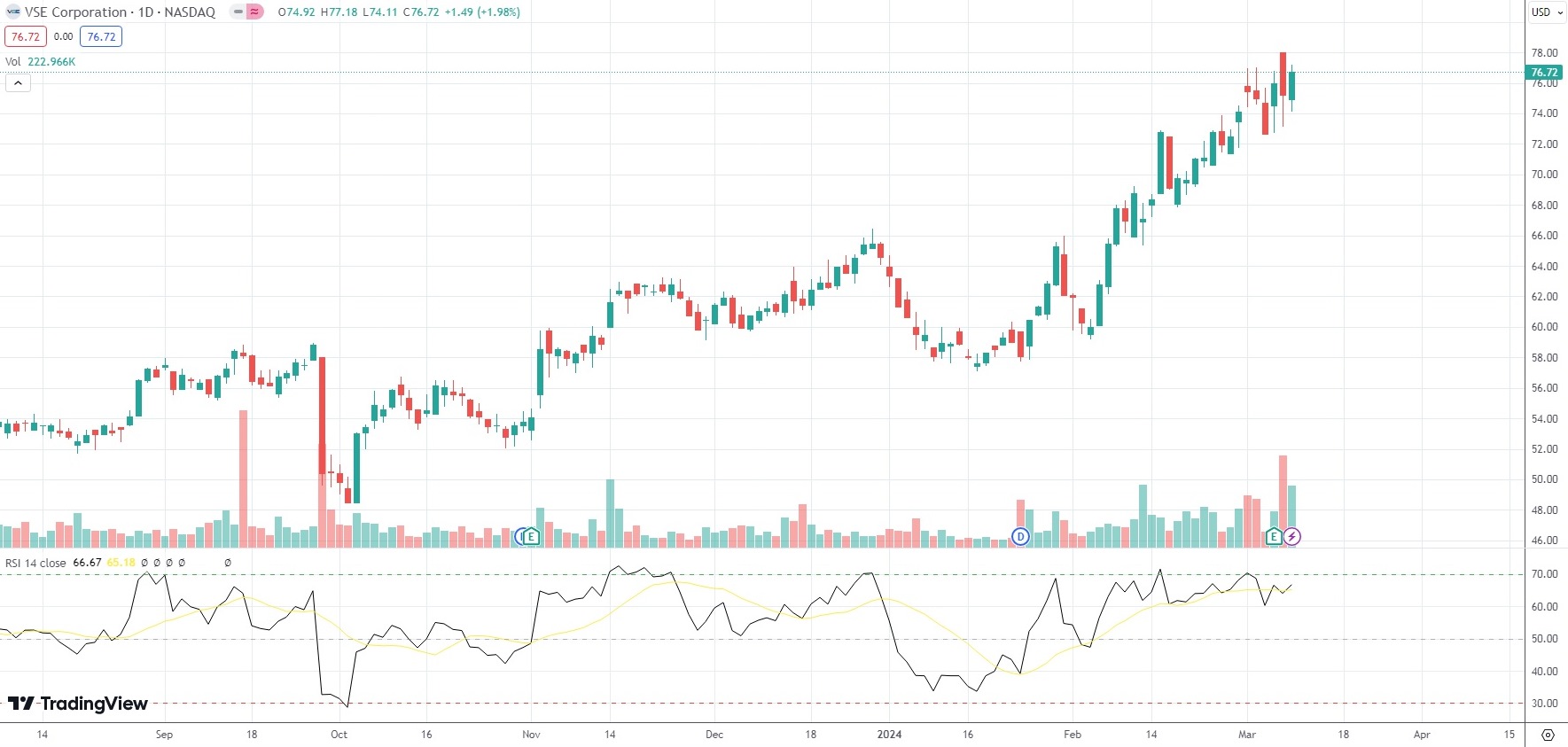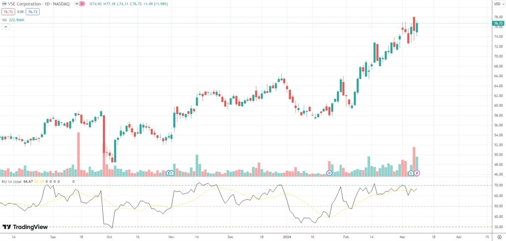 The shares of VSE Corp (VSEC) closed 1.98% ($1.49) higher at $76.72 on Nasdaq on Friday, as they reversed a loss from the previous market session.