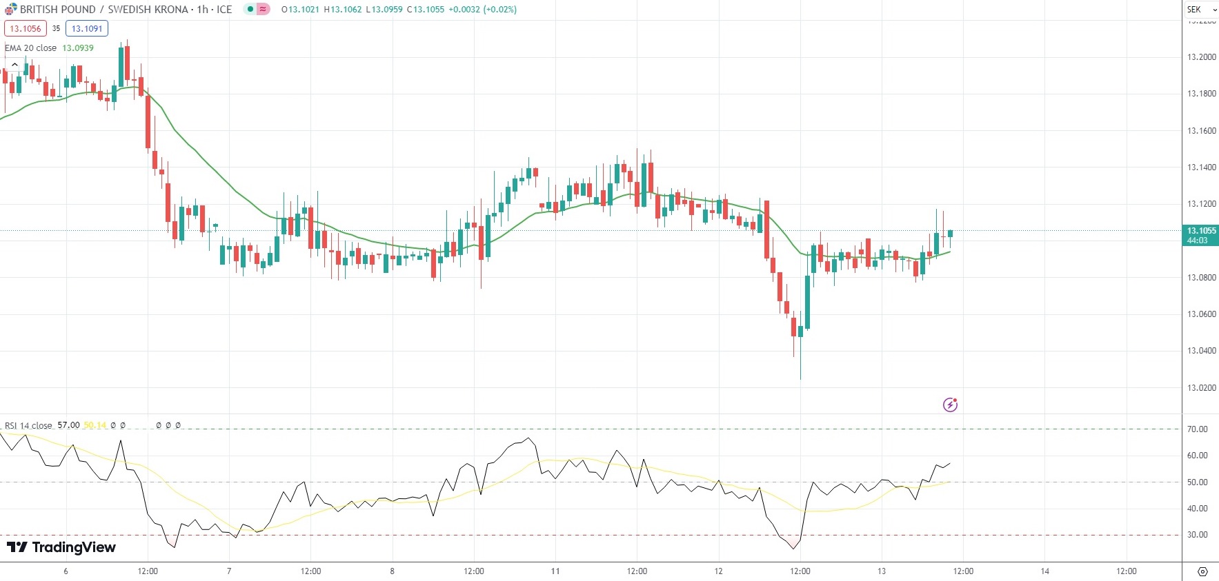 As of 10:15 GMT on Wednesday the GBP/SEK currency pair was edging up 0.10% to trade at 13.1055.