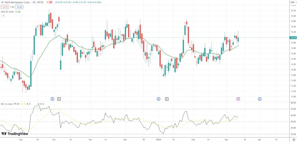 The shares of Park Aerospace Corp (PKE) went up 17.50% in 2023, compared with a 10.99% gain for the benchmark index, NYSE Composite (NYA).