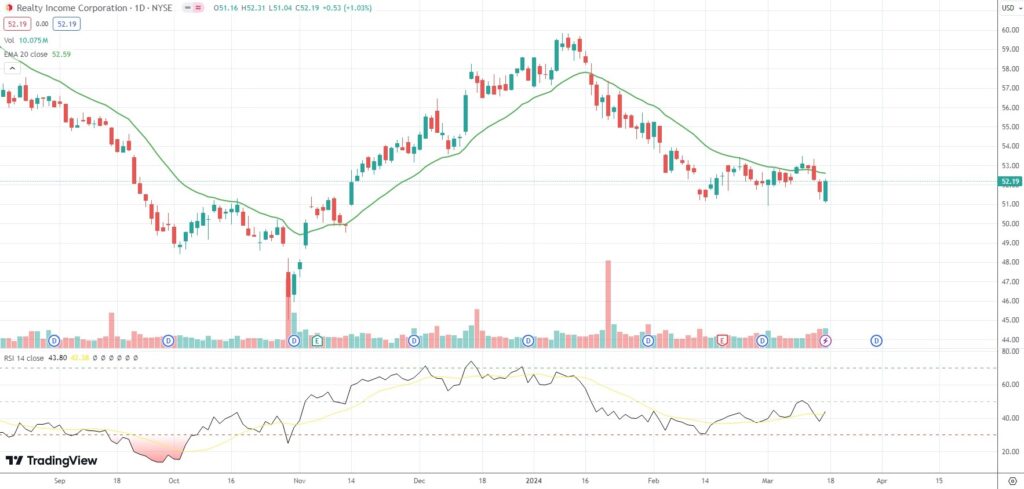 The shares of Realty Income Corporation (O) went down 9.47% in 2023, compared with a 24.23% gain for the benchmark index, S&P 500 (SPX).