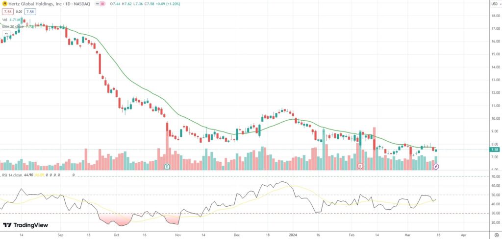 The shares of Hertz Global Holdings Inc (HTZ) went down 32.49% in 2023, compared with a 43.42% gain for the benchmark index, Nasdaq Composite (IXIC).