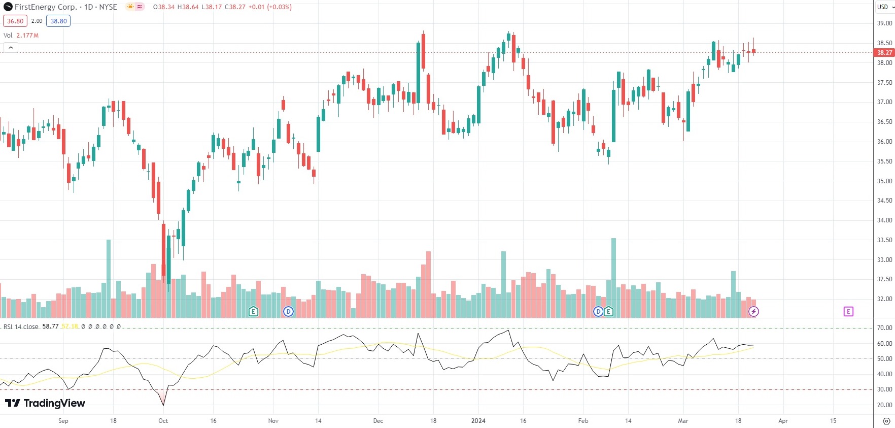The shares of FirstEnergy Corp (FE) closed 0.03% ($0.01) higher at $38.27 in New York on Thursday, as they reversed a small loss from the previous market session.