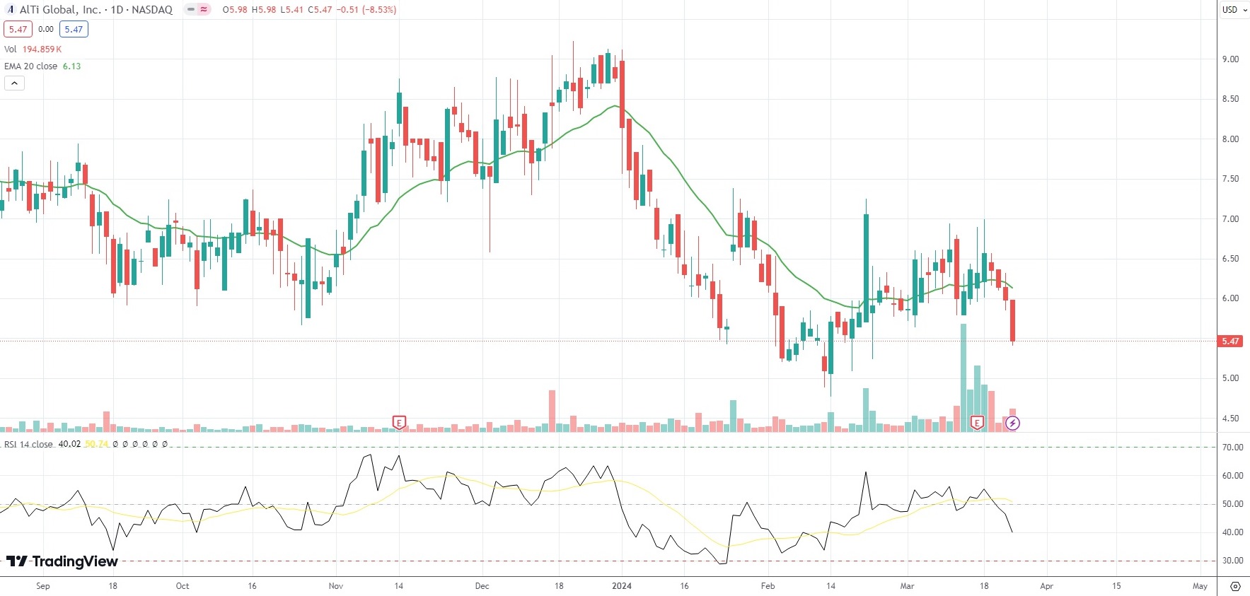 The shares of Alti Global Inc (ALTI) closed 8.53% ($0.51) lower at $5.47 on Nasdaq on Friday, as they extended the losses from the previous three market sessions.