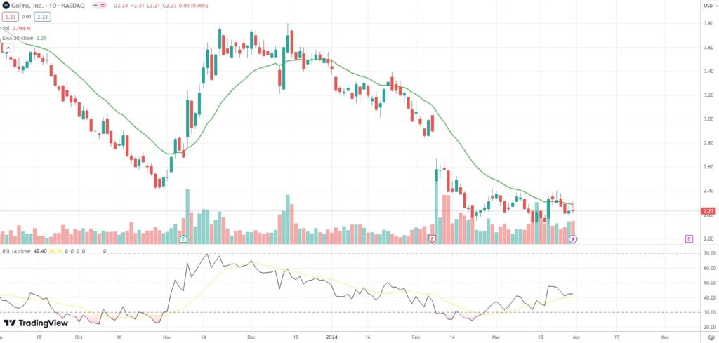 The shares of GoPro Inc (GPRO) closed without change at $2.23 on Nasdaq on Thursday, after recording a 0.90% gain in the previous market session.