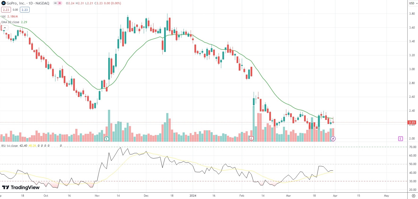 The shares of GoPro Inc (GPRO) went down 30.32% in 2023, compared with a 43.42% gain for the benchmark index, Nasdaq Composite (IXIC).