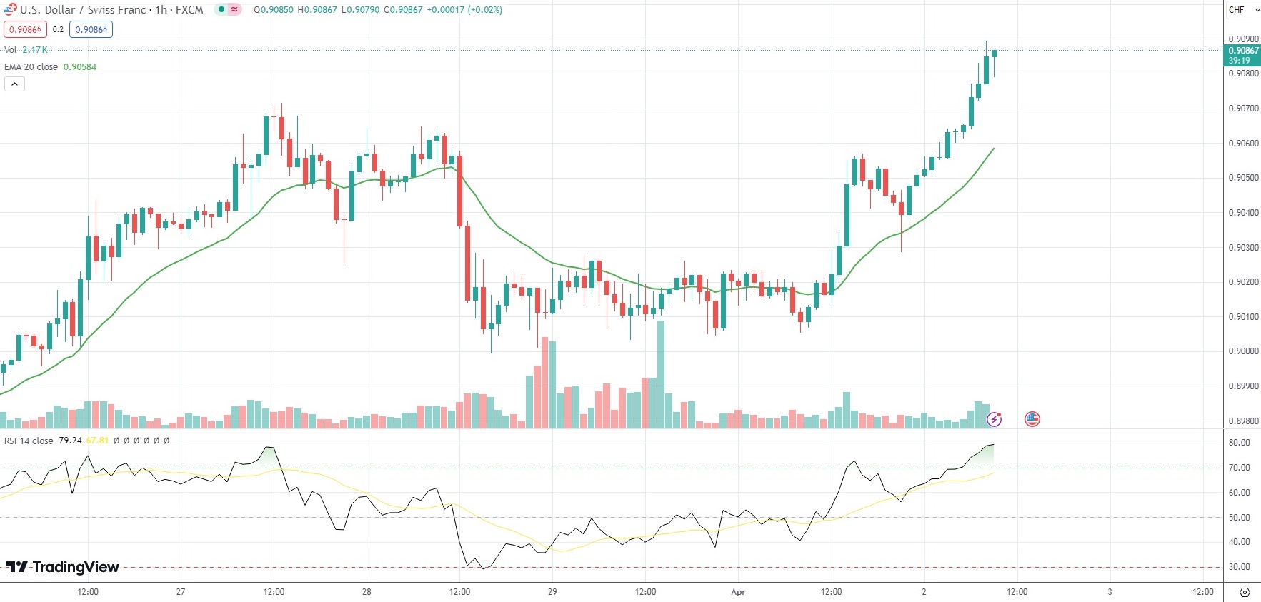 The Swiss Franc was 0.48% weaker on the day against the US Dollar, with the USD/CHF currency pair last trading at 0.9086.