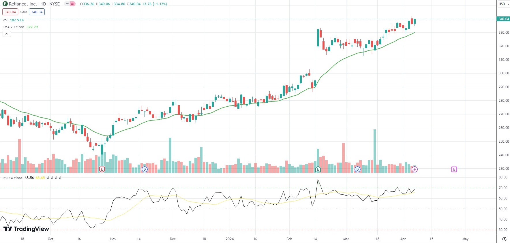The shares of Reliance Inc (RS) closed 1.12% ($3.76) higher at $340.04 in New York on Friday, as they reversed a loss from the previous market session.