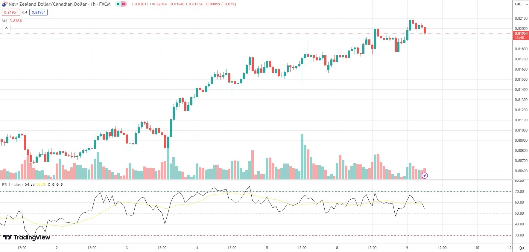 As of 6:45 GMT on Tuesday the NZD/CAD currency pair was edging up 0.23% to trade at 0.8196.