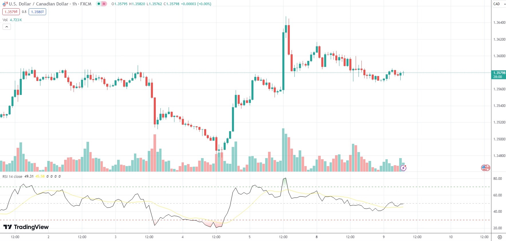 As of 7:31 GMT on Tuesday the USD/CAD currency pair was inching up 0.07% to trade at 1.3581.