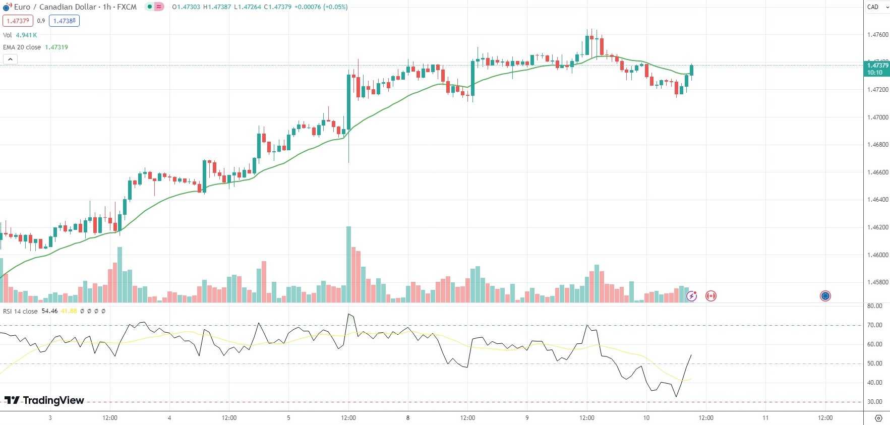 As of 9:49 GMT on Wednesday the EUR/CAD currency pair was inching up 0.03% to trade at 1.4737.