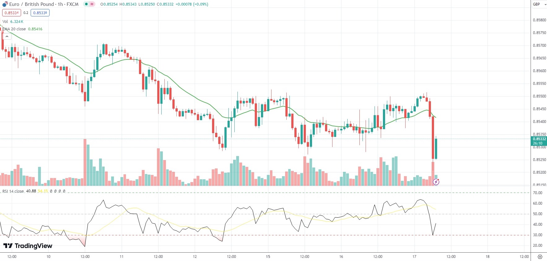 Earlier in the session, the minor Forex pair went down as low as 0.8521. The latter has been the pair’s weakest level since March 12th (0.8518).