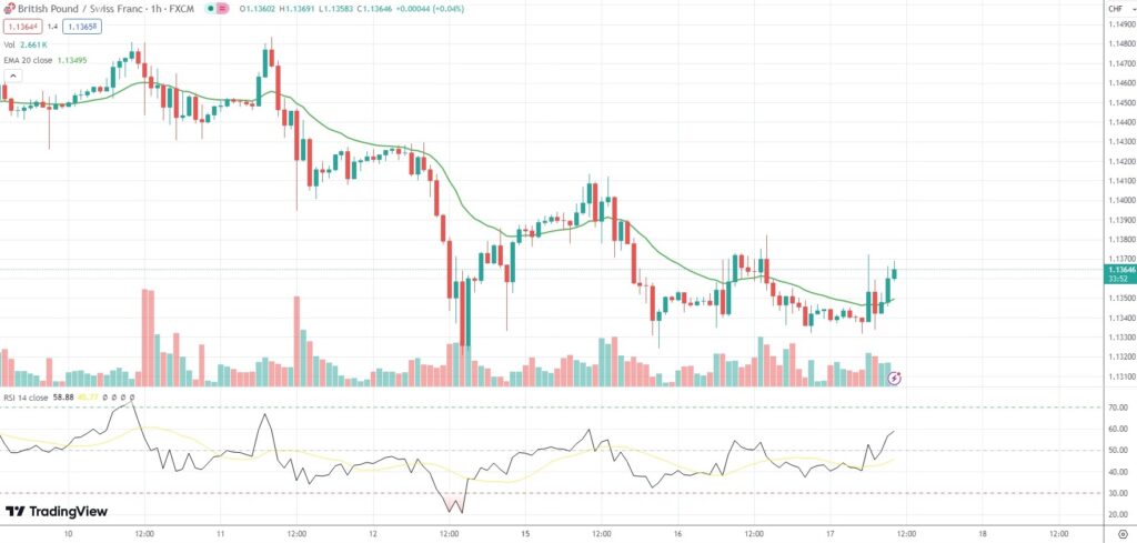 The GBP/CHF currency pair registered modest gains on Wednesday, after touching an intraday high of 1.1372, as data showed UK consumer price inflation had eased to its lowest level since September 2021 in March.