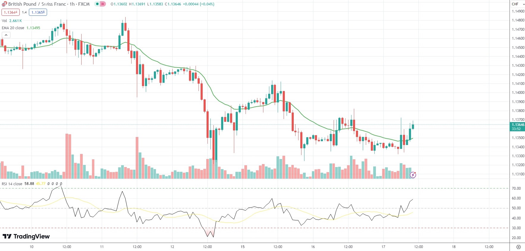 As of 10:25 GMT on Wednesday the GBP/CHF currency pair was edging up 0.25% to trade at 1.1364.