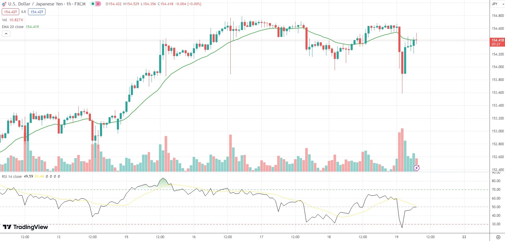 The Japanese Yen was 0.14% firmer on the day against the US Dollar, with the USD/JPY currency pair last trading at 154.427.