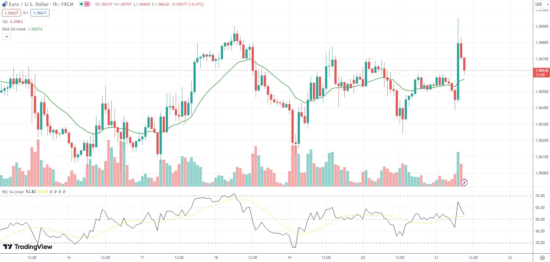 The Euro was little changed on the day against the US Dollar, with the EUR/USD currency pair last trading at 1.0663.