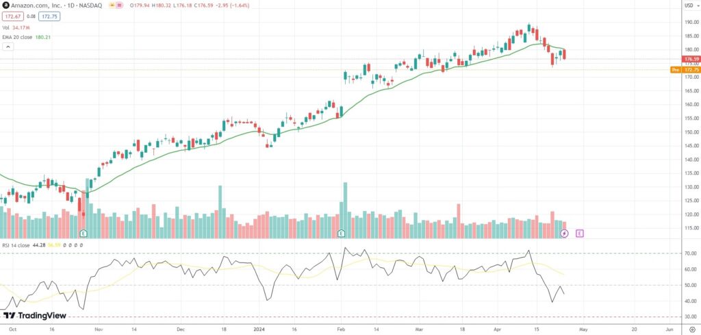 The shares of Amazon.com Inc (AMZN) closed 1.64% ($2.95) lower at $176.59 on Nasdaq on Wednesday, as they snapped a two-day streak of gains.